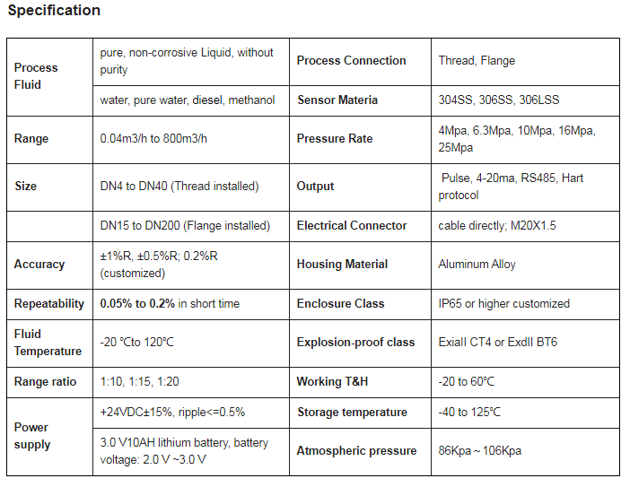 - Output: pulse, 4-20mA, RS485, Hart