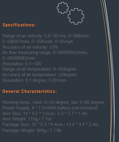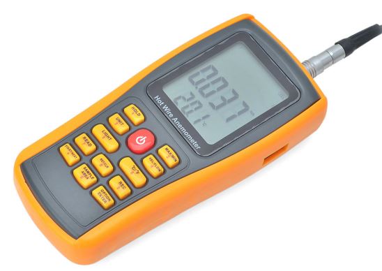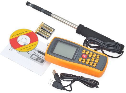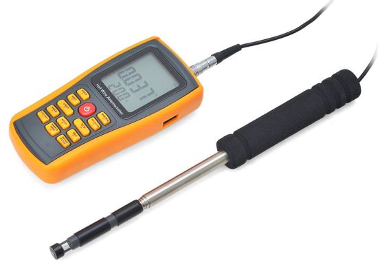 The slim GM8903 Hot-Wire Anemometer with extended handle and large LCD display allows operation in confined spaces. Measuring air velocity /air flow / air temperature, the meter is widely used in the application fields of heating, ventilation, meteorology, agriculture and frozen storage etc.