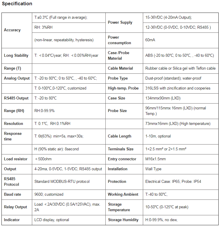 The MTH800 is a high quality wall type temperature and humidity transmitter with remote sensor, adopting Switz manufactured advanced sensor chip, designed for temperature and humidity measurement in building automation, libraries, warehouses, Medical Industry, HAVC Industry, Greenhouse etc including high temperature and humidity environments.