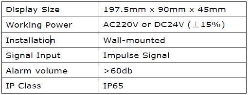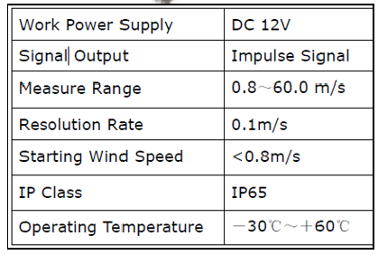 - Programmable wind speed alarm set points with visual warning as well as 1x relay output